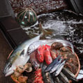 富山湾の新鮮な海の幸。料理長自慢の季節の一品料理。 粋と活気があふれる生簀(いけす)をぐるりと囲むカウンター席 と小上がり席。最大32名様までのご宴会も可能な掘り座席や個室で富山の幸をご満喫頂けます。 四季折々の富山湾の味覚をお楽しみ下さいませ。